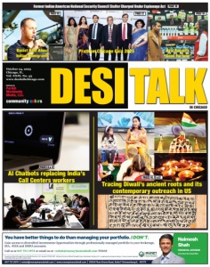 October 24, 2025 Chicago, IL. Vol. XXIX, No. 43 www.desitalkchicago.com Published by Parikh Worldwide Media, LLC. community c o l o r s IN CHICAGO PHOTOS: MISCELLANEOUS PAGES 12,14 Racist Rant About Indian Immigrants PAGE 19 PAGE 10 Former Indian American National Security Council Staffer Charged Under Espionage Act Pratham Chicago Gala 2025 Aziz Ansari’s “Good Fortune” PAGE 12 AI Chatbots replacing India’s Call Centers workers PAGE 10 PAGES 6 & 8 Tracing Diwali’s ancient roots and its contemporary outreach in US PAGES 14, 15 &17