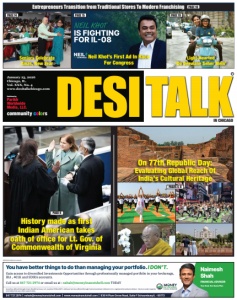 January 23, 2026 Chicago, IL. Vol. XXX, No. 4 www.desitalkchicago.com Published by Parikh Worldwide Media, LLC. community c o l o r s IN CHICAGO PHOTOS:Miscellaneous PAGES 12,14 Seniors Celebrate Xmas, New Year Light-Hearted ‘Do Deewane Seher Mein’ PAGE 14 PAGE 19 PAGE 15 Neil Khot’s First Ad In Race For Congress R Entrepreneurs Transition from Traditional Stores To Modern Franchising PAGE 10 PAGE 8 PAGES 4, 6 On 77th Republic Day: Evaluating Global Reach Of India’s Cultural Heritage History made as first Indian American takes oath of office for Lt. Gov. of Commonwealth of Virginia