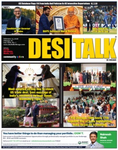 February 13, 2026 Chicago, IL. Vol. XXX, No. 7 www.desitalkchicago.com Published by Parikh Worldwide Media, LLC. community c o l o r s IN CHICAGO PHOTOS:REUTERS, FIA CHICAGO-1980 PAGES 12,14 Candidate For Governor Of Maine India Defeat US @T20 World Cup PAGE 8 PAGE 19 PAGE 15 BAPS Guinness World Record R ICE Database Flags 114 From India And Pakistan As US Intensifies Deportations PAGE 8 PAGES 4, 6 Modi adopted strong line to clinch US trade deal; Sent message of India’s resilience through Doval: Bloomberg report PAGE 12 FIA Chicago-1980 hosts 77th Republic Day of India highlighting India-Israel-US friendship