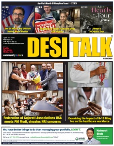 April 10, 2026 Chicago, IL. Vol. XXX, No. 15 www.desitalkchicago.com Published by Parikh Worldwide Media, LLC. community c o l o r s IN CHICAGO PHOTOS:Miscellaneous PAGES 12,14 One Of NASA’s Key Officials Behind Moon Mission Shreya’s All Hearts Tour PAGE 8 PAGE 19 PAGE 15 Republican Voices Concern Over GOP Ouster R April Is A Month Of Many New Years ! PAGE 14 Federation of Gujarati Associations USA meets PM Modi, elevates NRI concerns Examining the impact of H-1B filing fee on the healthcare workforce PAGE 10 PAGE 12